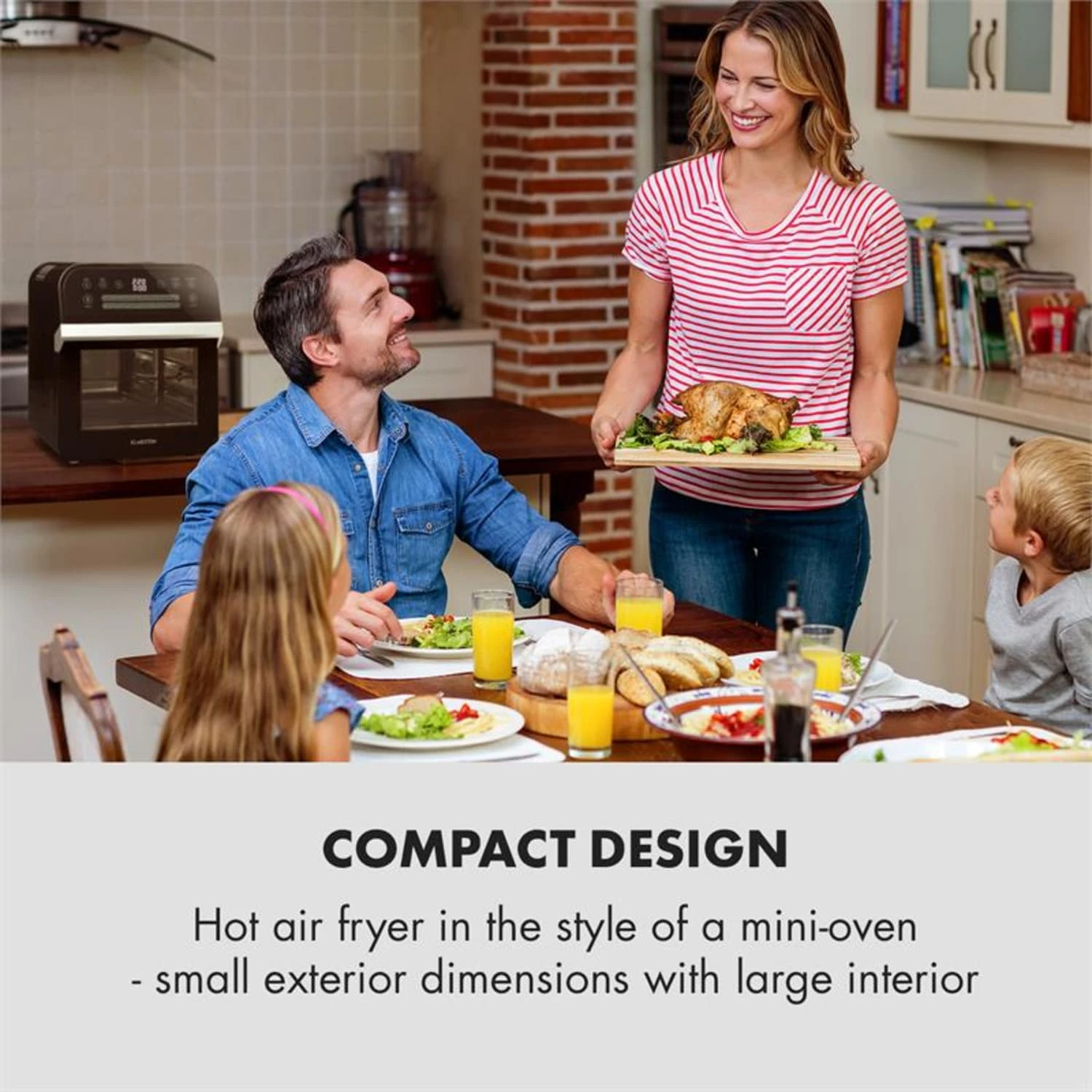 Kompaktes Design: Heißluftfritteuse im Stil eines Mini-Backofens – geringe Außenmaße mit großem Innenraum