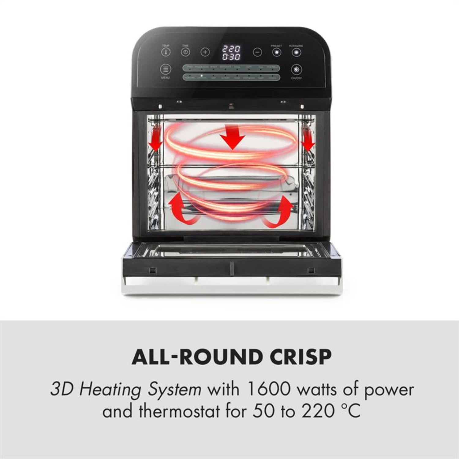 Rundum knusprig: 3D Heating System mit 1600 Watt Leistung und Thermostat für 50 bis 220 °C
