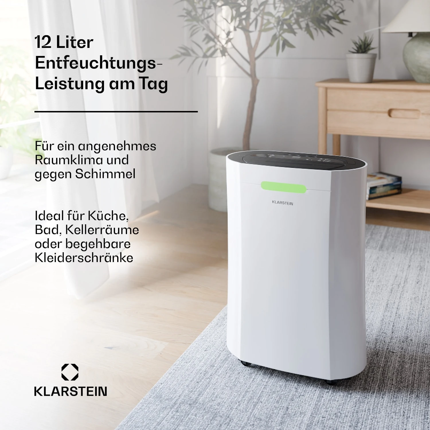 Hocheffiziente Entfeuchtung: Entfernt bis zu 12 Liter Wasser pro Tag, ideal für Räume bis zu 18 m²