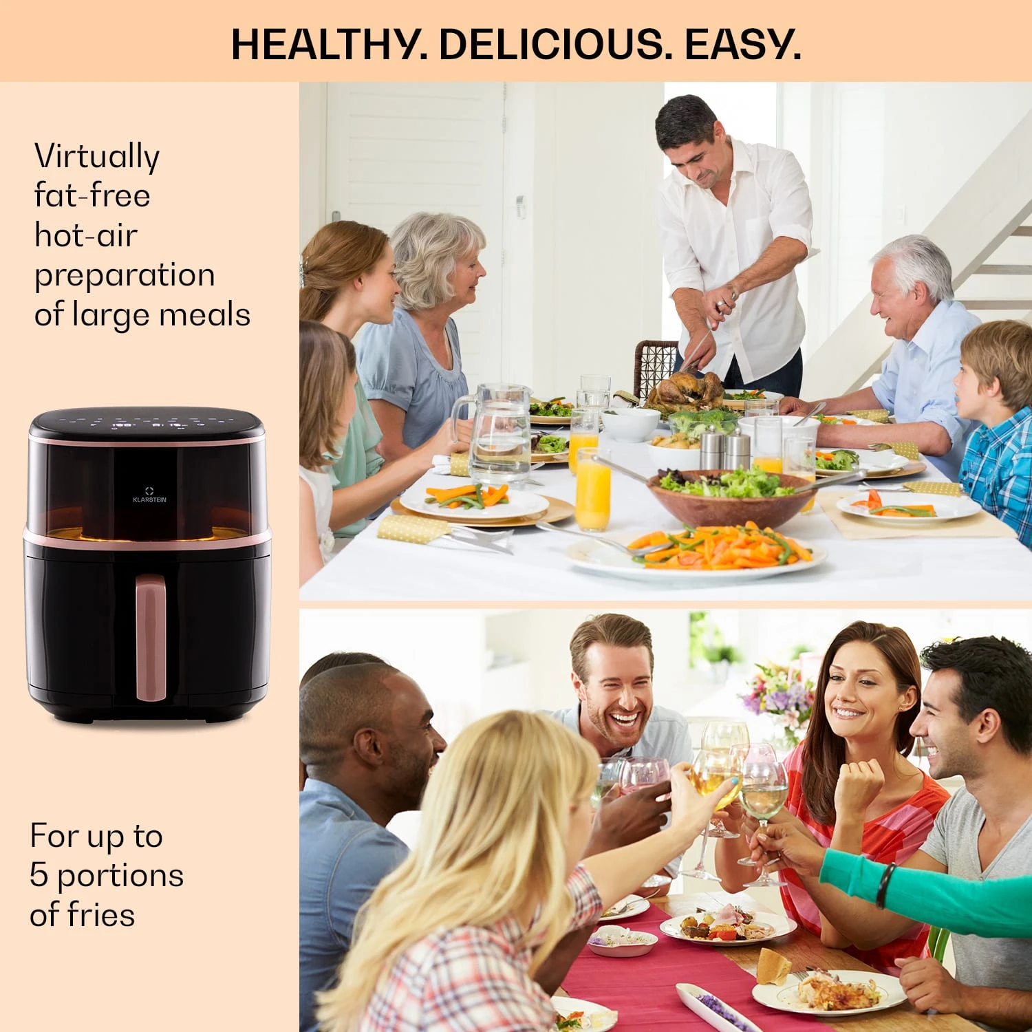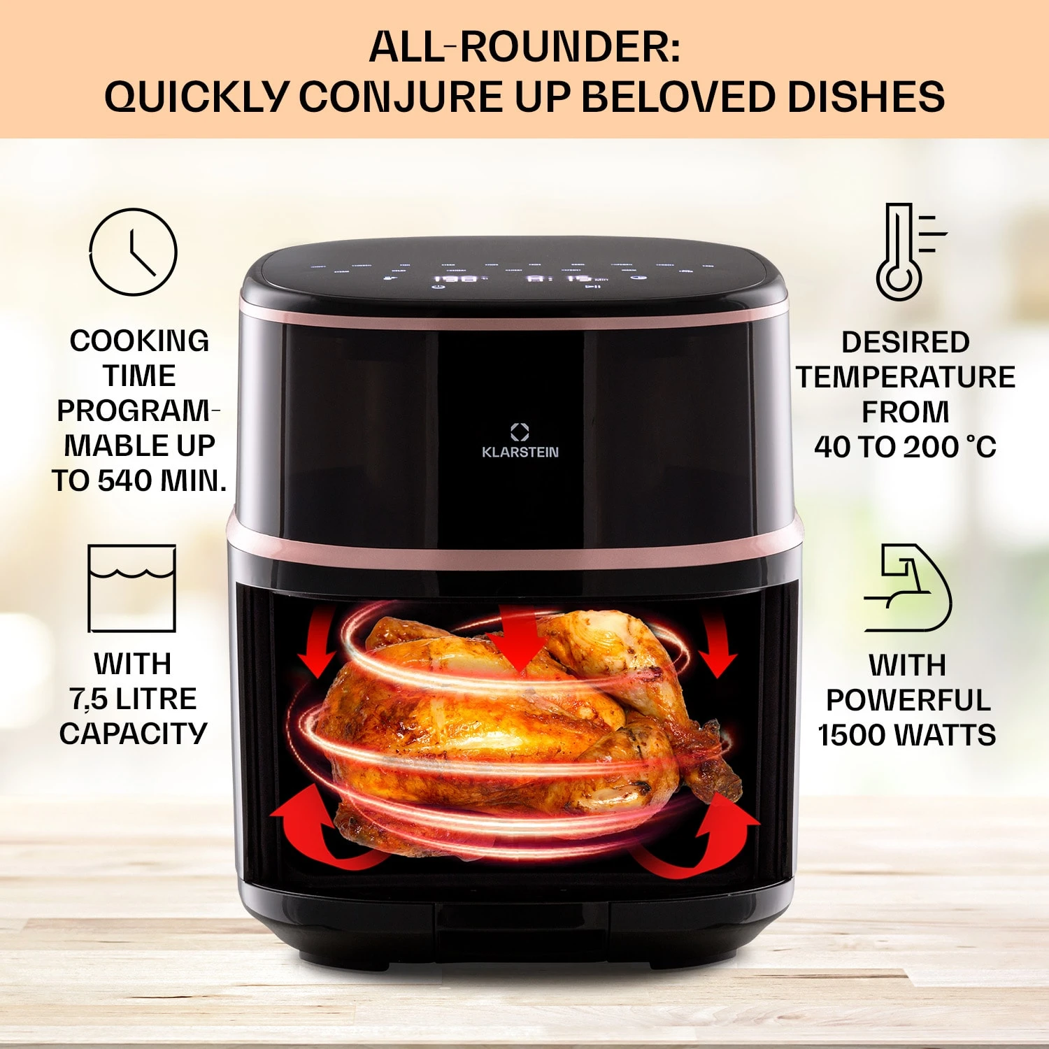 Stark: 1500 Watt Heißluftfritteuse mit einstellbaren 40 – 200 °C
