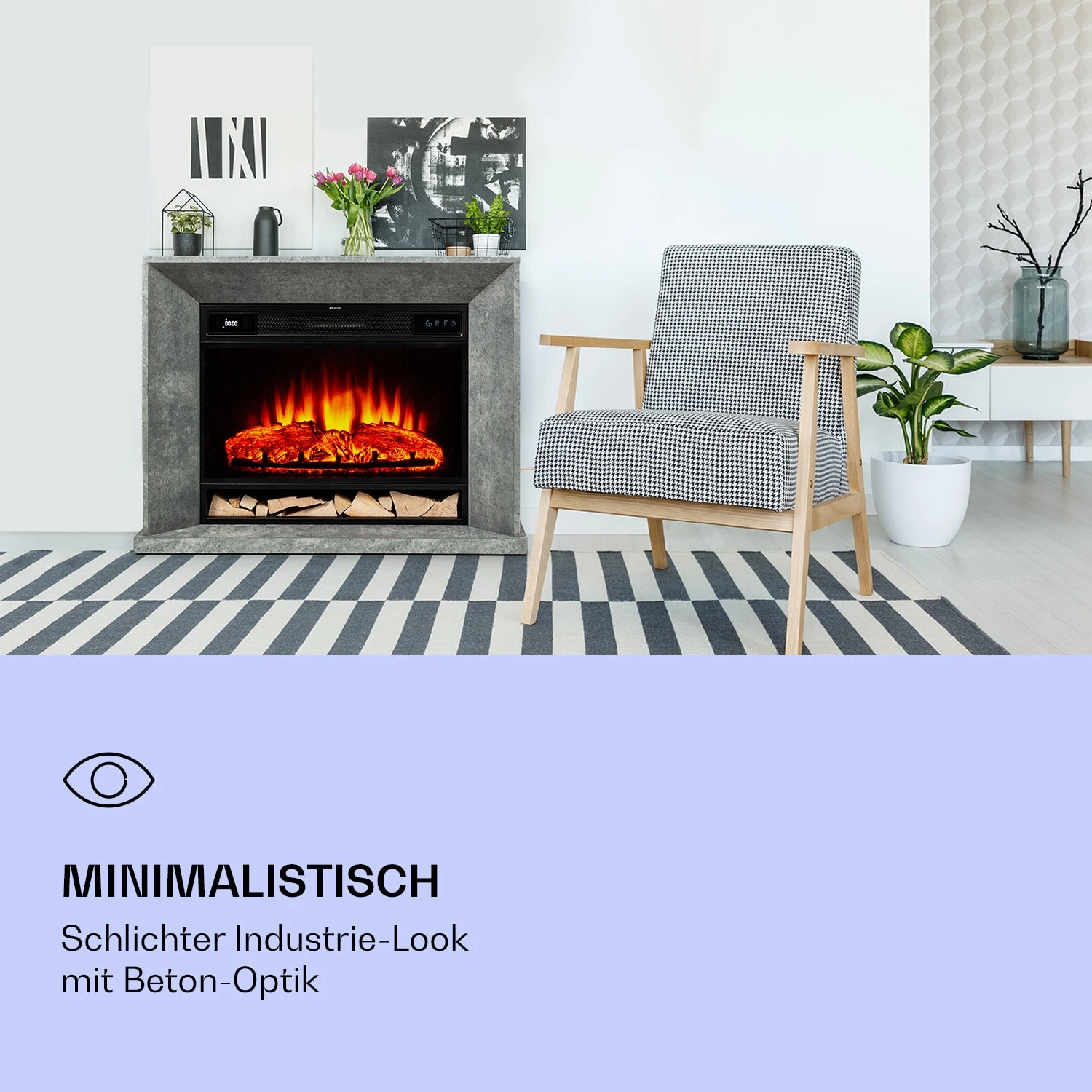 Mehr Atmosphäre: unterseitiges Fach für dekorative Holzscheite