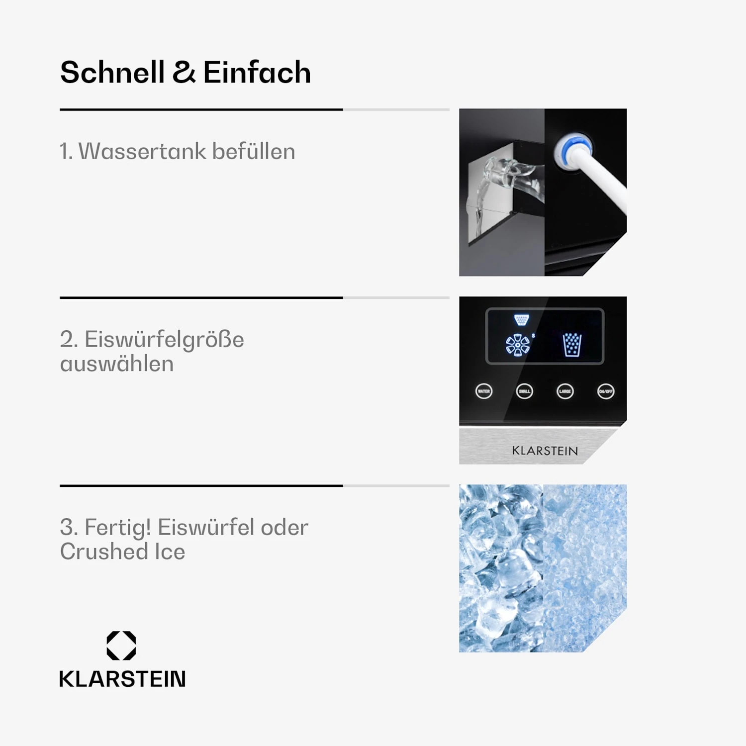 - 2 Eiswürfelgrößen (Small und Large)