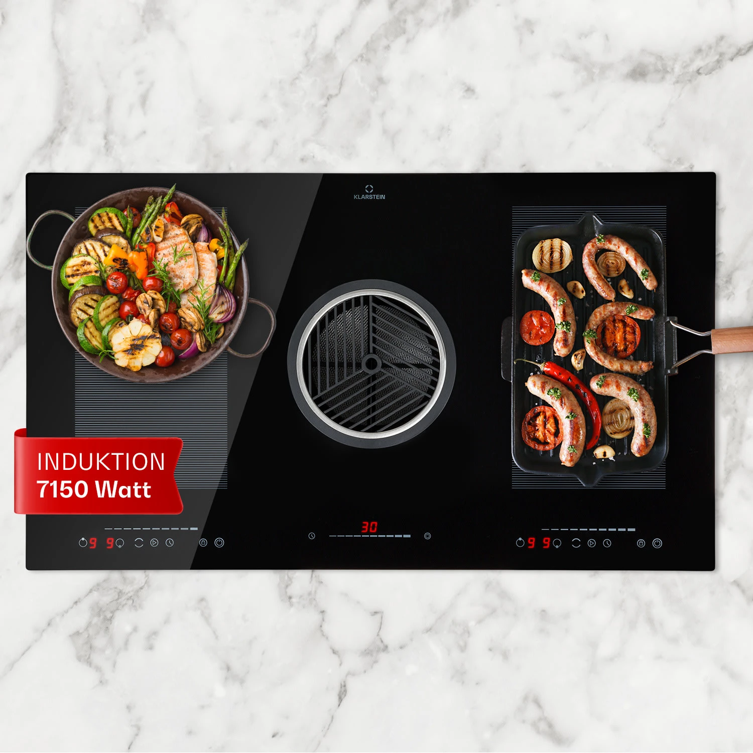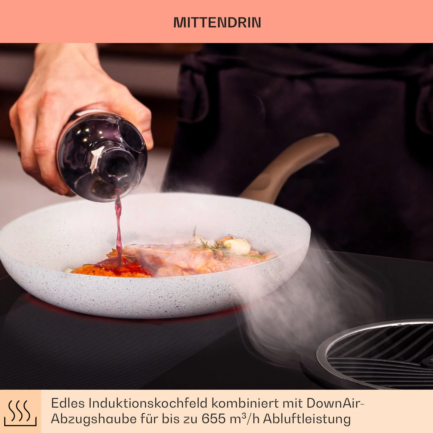 Mittendrin: edles Induktionskochfeld mit DownAir-Abzugshaube für bis zu 655 m³/h Abluftleistung