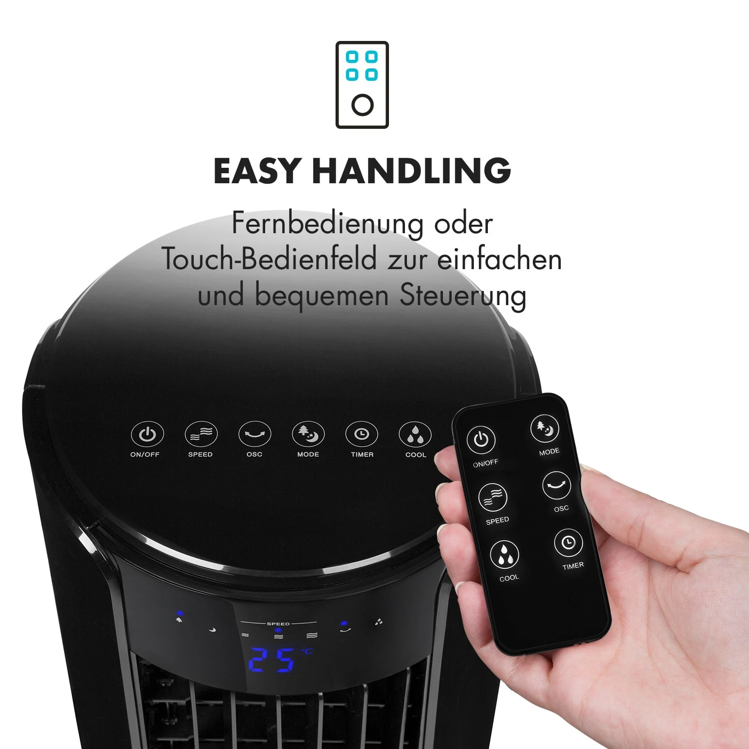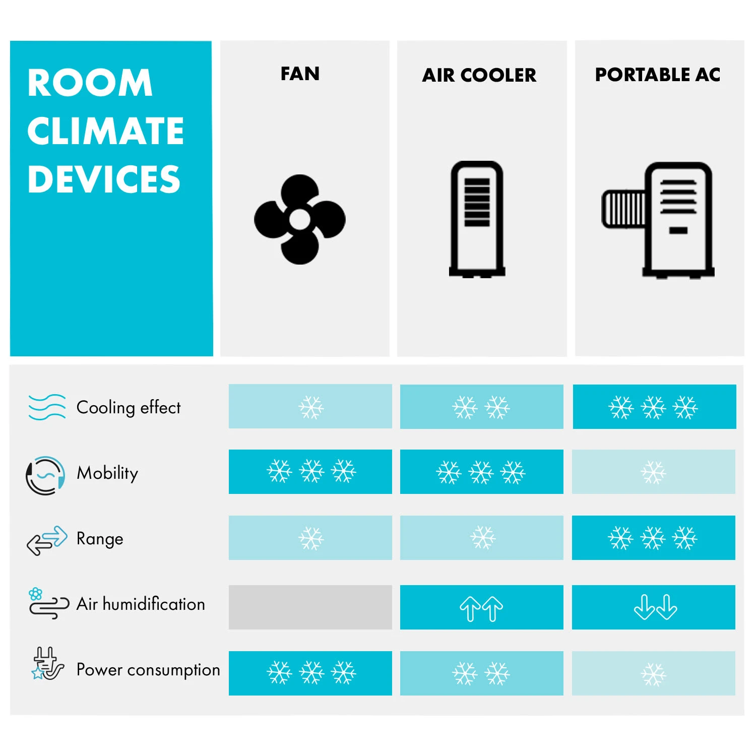 - Bitte beachte, dass es sich bei dem Gerät nicht um eine Klimaanlage handelt: Die Luftkühlung wird durch die Verdunstung von Wasser erzielt