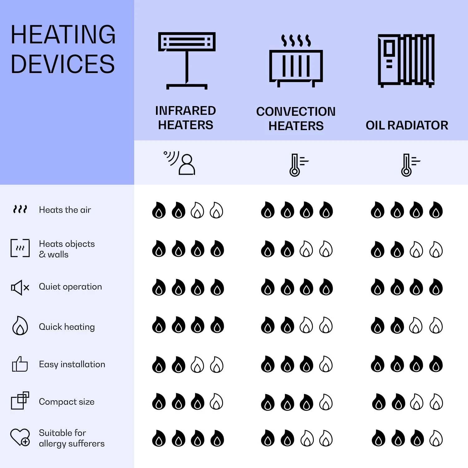 - Heizstufen: hoch / mittel / niedrig