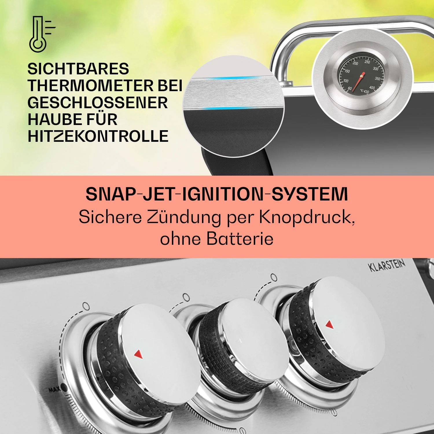 - Möglichkeit zur Installation eines Drehspießes zur Zubereitung von Grillhühnchen oder Haxenbraten
