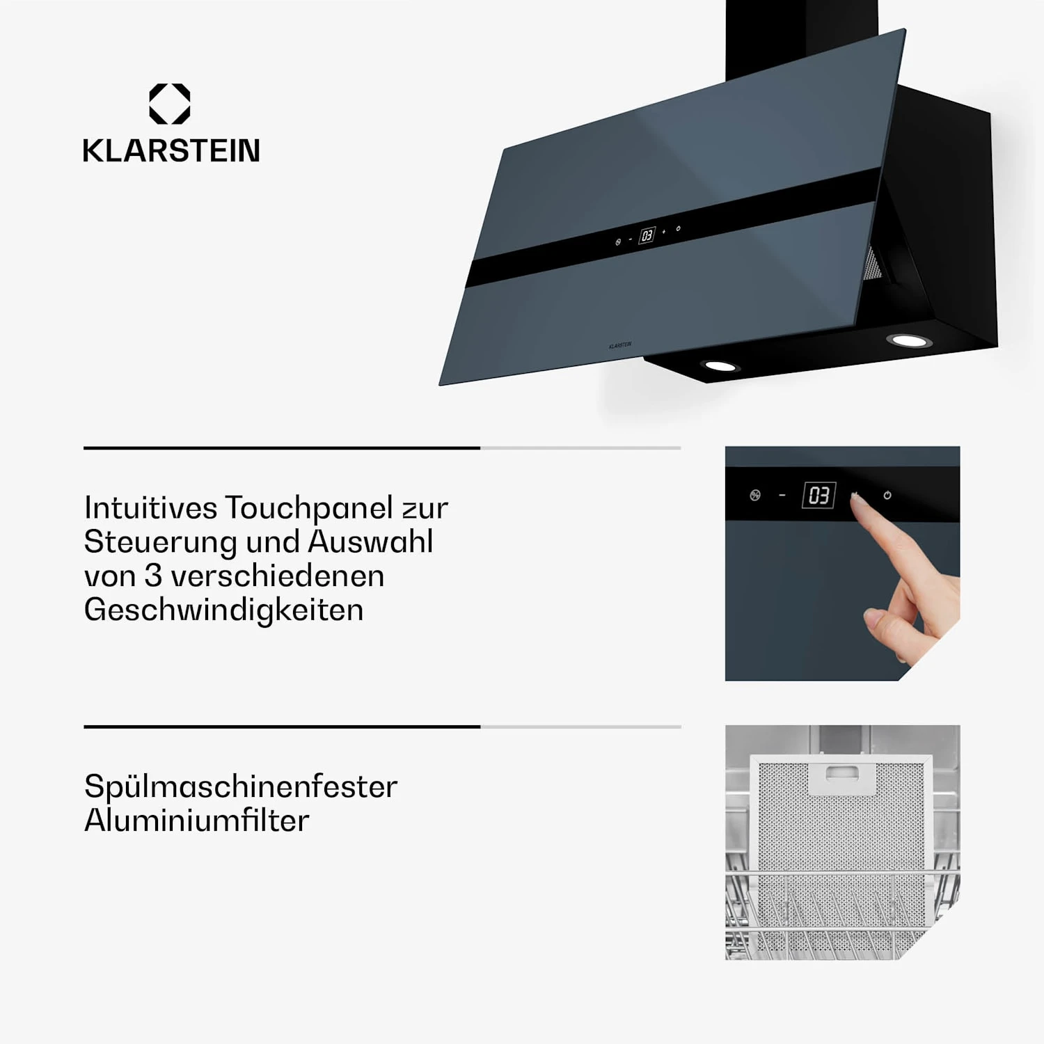 - Filtersystem 1: 2 x 5-lagige Fettfilter aus Aluminium