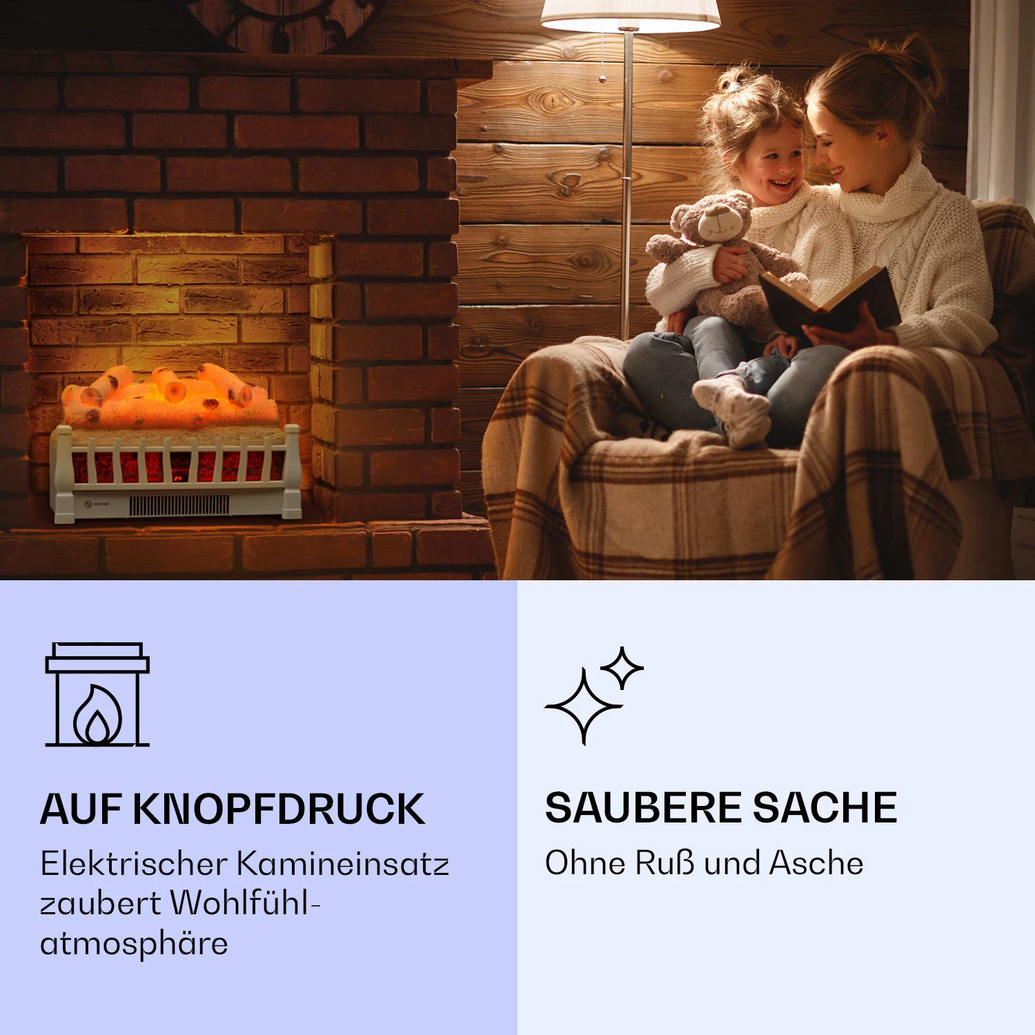Mit dem Klarstein Kamini FXL 2G Elektrokamin kannst du das ganze Jahr hindurch eine gemütliche Kaminatmosphäre mit glimmenden Holzscheiten und einer realistischen 3D-LED-Flammenillusion genießen. Die zuschaltbare zweistufige Heizfunktion macht die Illusion perfekt. Gesteuert wird der Kamini FXL 2G via Touch-Bedienfeld oder ganz bequem vom Sofa über die praktische Fernbedienung. Fünf Helligkeitsstufen und eine Timerfunktion machen den Klarstein Kamini FXL Kamineinsatz zum idealen Ganz-Jahres-Kamin.