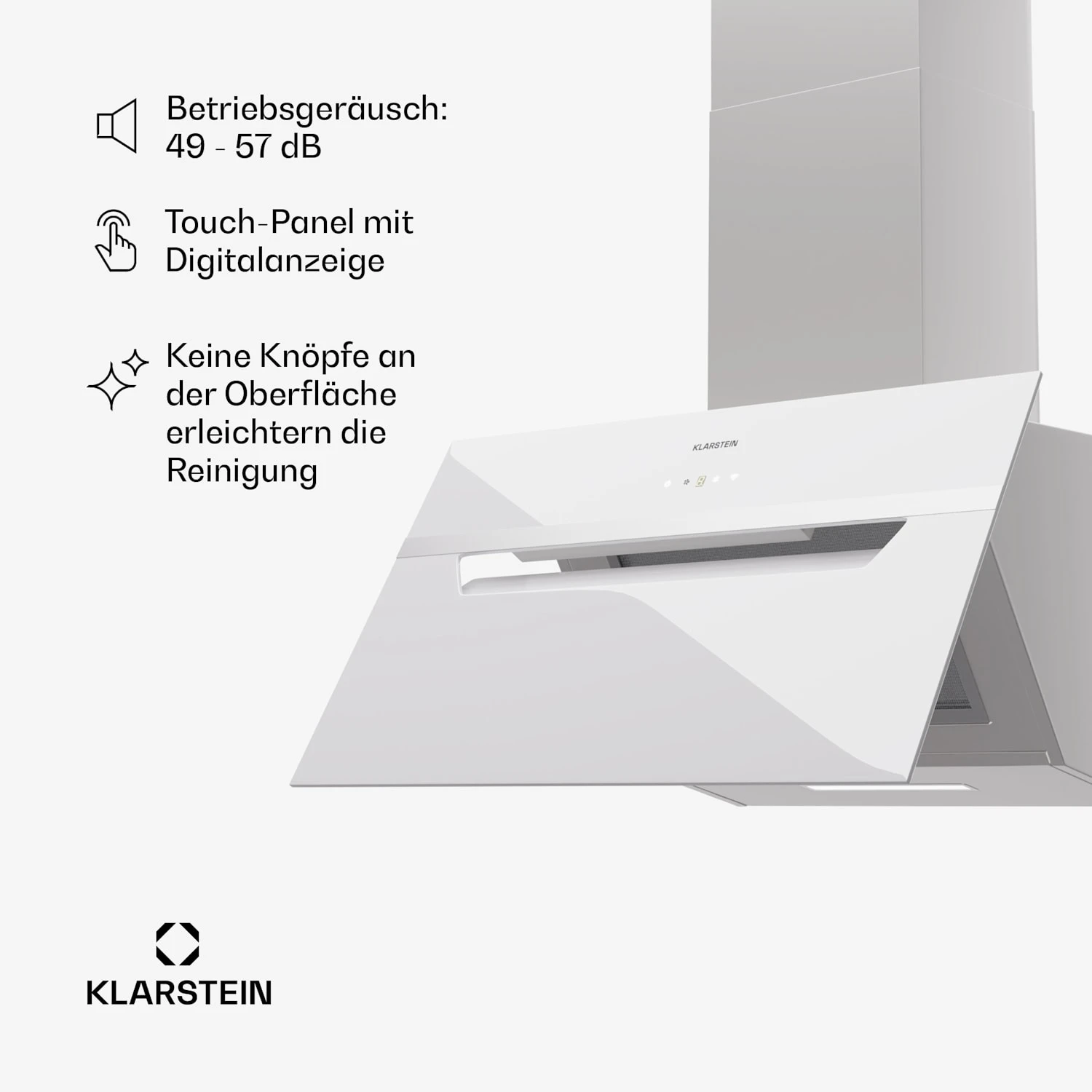- Betriebsgeräusch (min./max./Intensivstufe): 49 / 57 / 59 dB