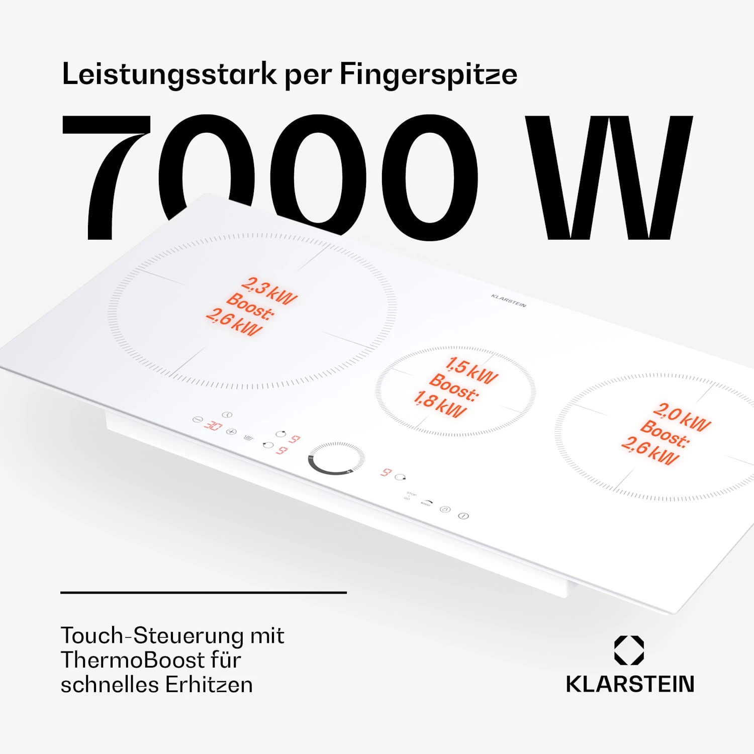 Kraftvolle Hitze: Gesamtleistung von max. 6000 Watt in drei Kochzonen mit 2500, 2000 und 1500 Watt Einzelleistung