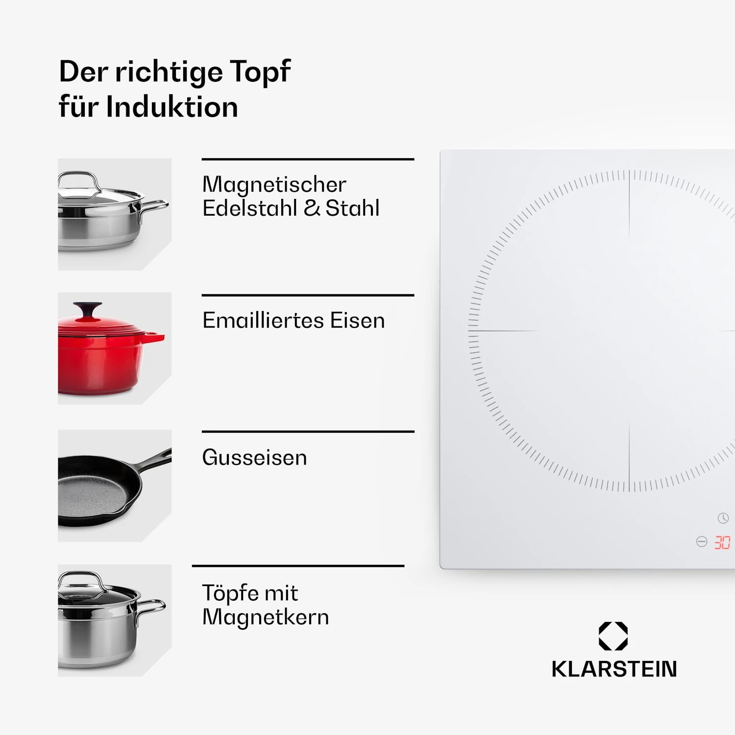 - Spar-Funktion: Kochzonen-Leistung wird automatisch reduziert, um Überlast zu vermeiden