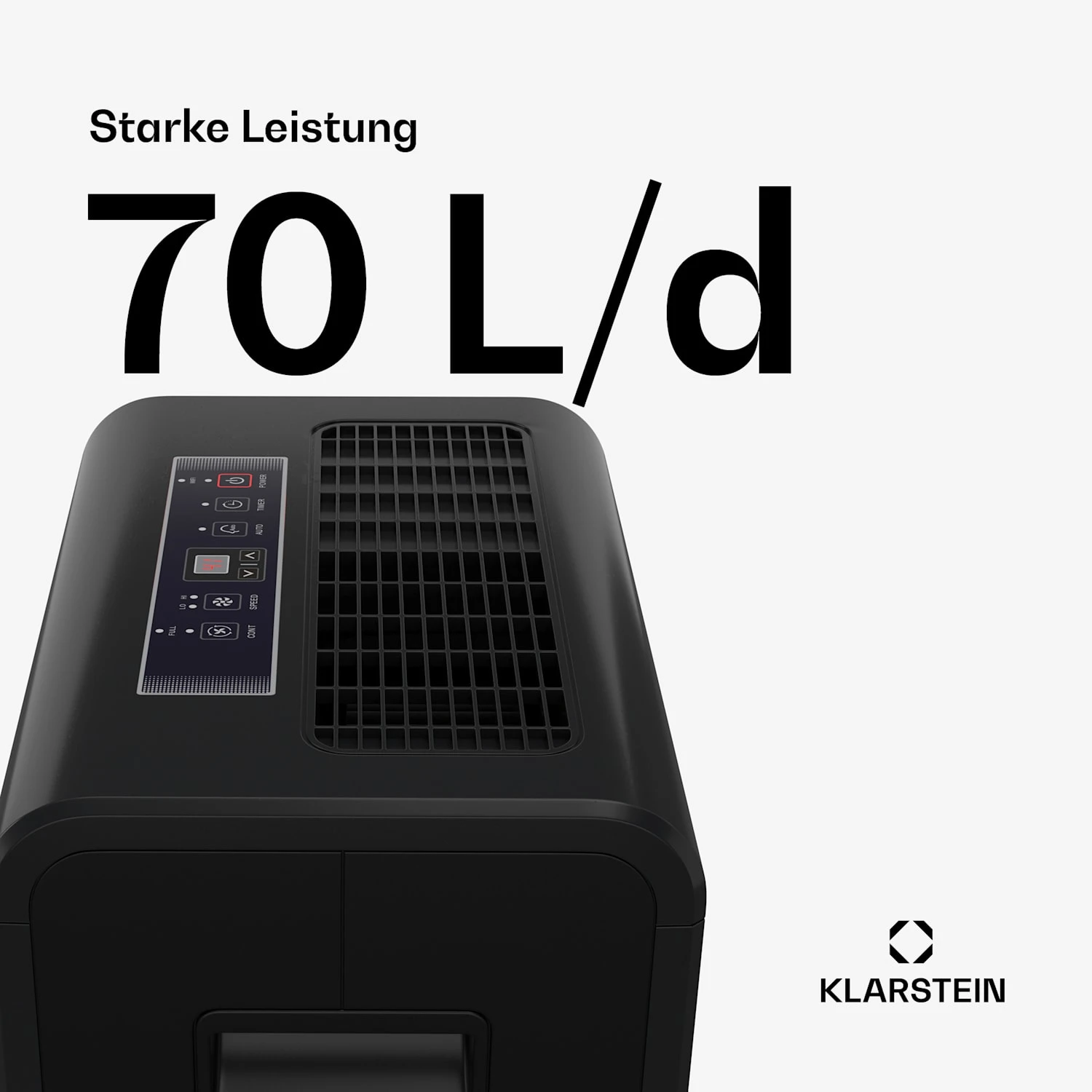 Ideale Luftfeuchte: 70 Liter/24 Stunden Entfeuchtungsleistung