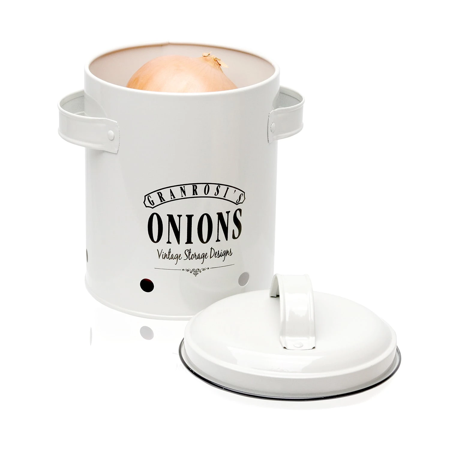 Ausreichend Platz: großer Zwiebeltopf mit Seitengriffen für die Aufbewahrung von bis zu 1,6 kg Zwiebeln