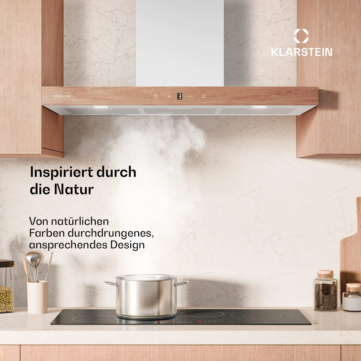 Design inspiriert von der Natur: Warme, natürliche Farben wie Holz- und Off-White-Töne fügen sich stilvoll in moderne Küchen ein