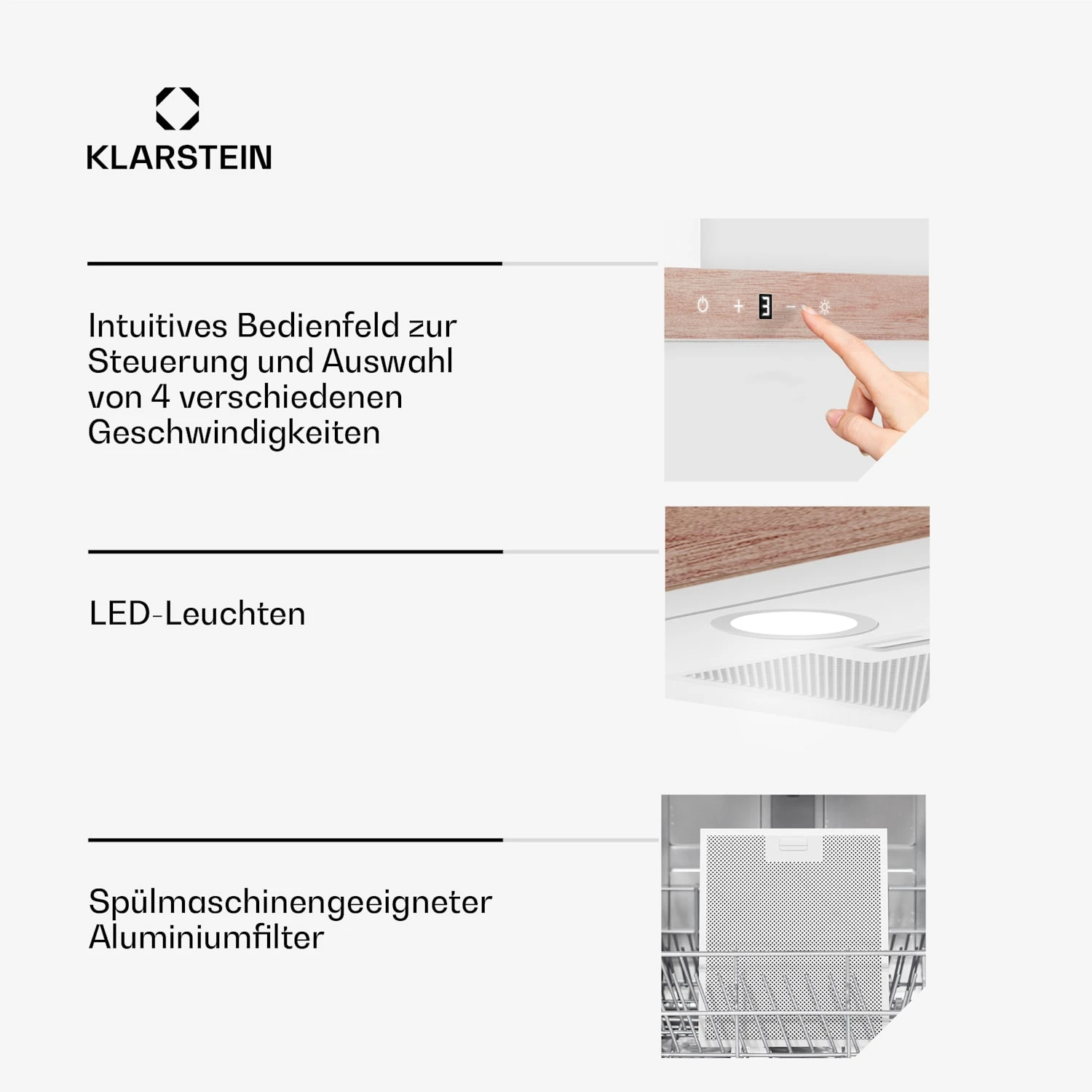 Betriebsarten: Abluft + Umluft mit Aktivkohlefilter